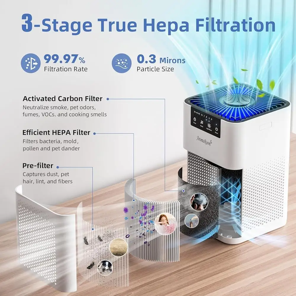 HEPA Air Purifier Bedroom Home Pet Odor Silent 360° Airflow Essential Oil Aromatherapy Diffuser Air Cleaner