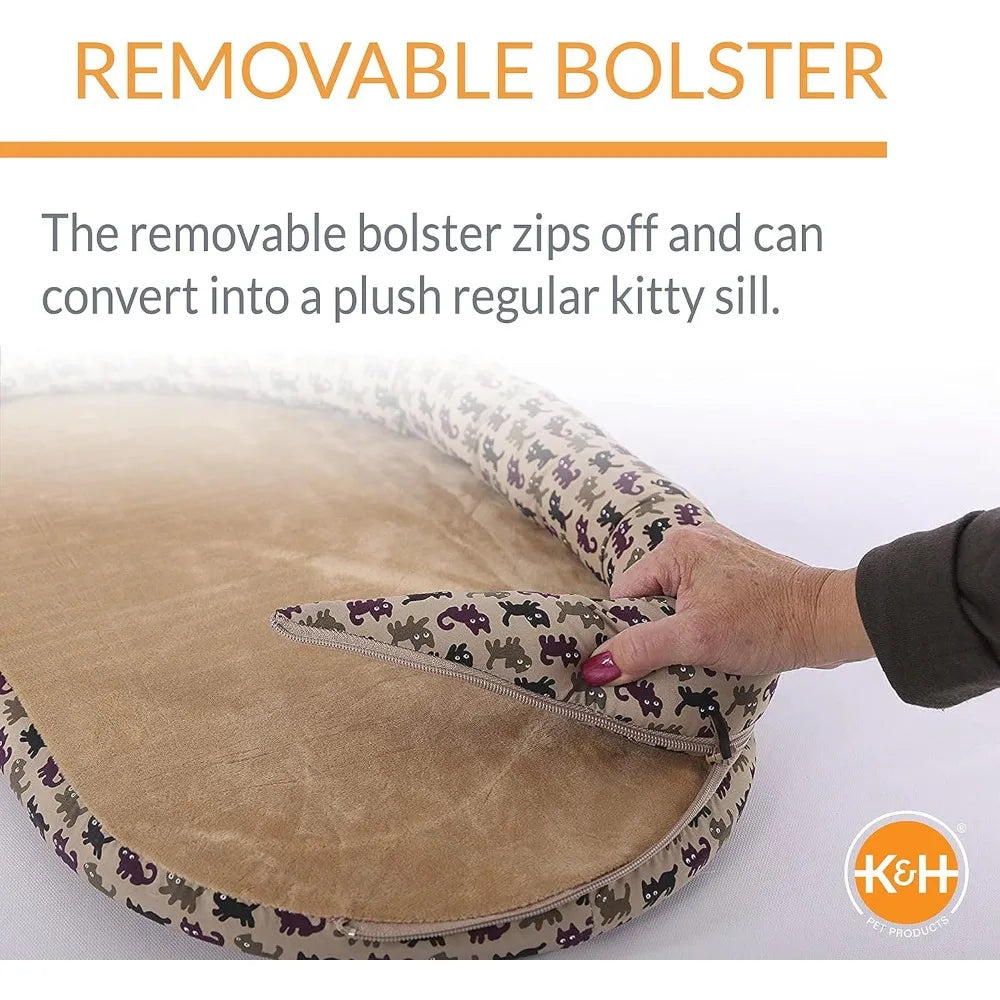 K&H Pet Products Bolster Kitty Sill Cat Window Perch Bed for Large Cats, Orthopedic Window Hammock Holds 40 lbs, Washable Cover,