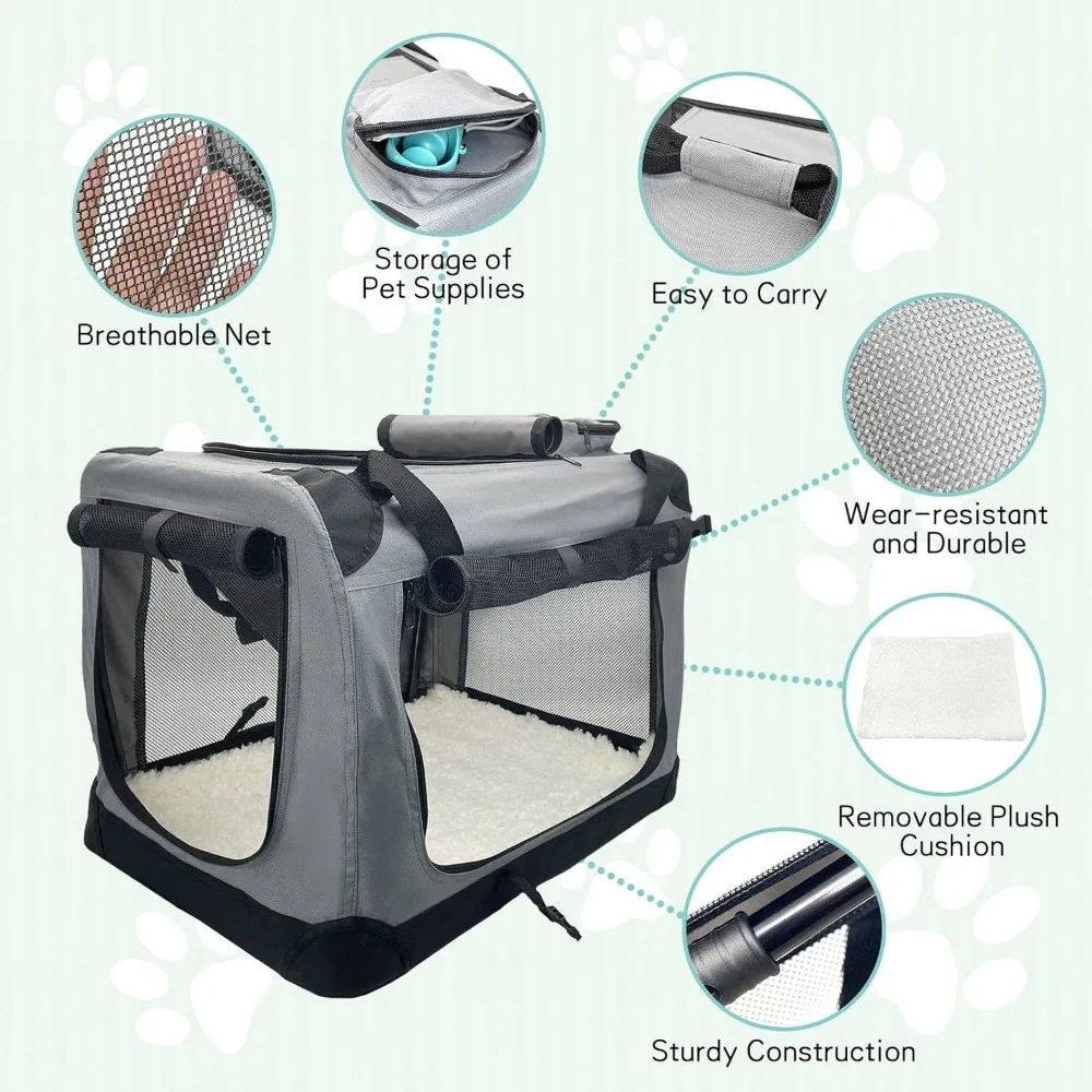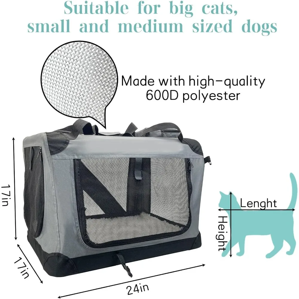Large Cat Carrier for 2 Cats, 24x17x17 Soft Dog Crate Collapsible Portable Travel Pet Carrier Bag Durable Breathable Foldable