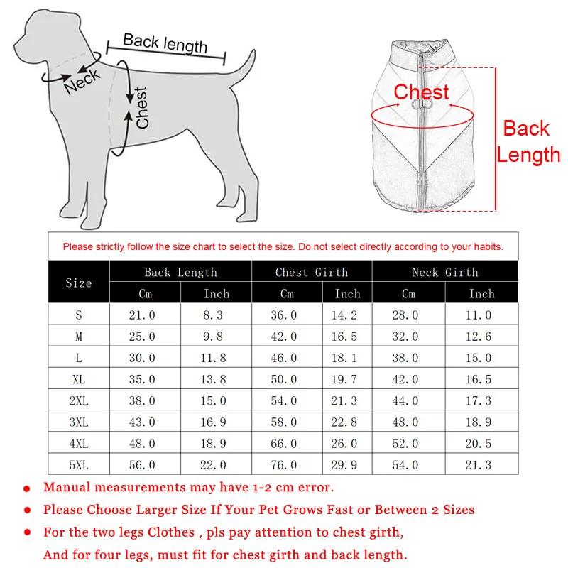 Please Choose Larger Size If Your Pet Grows Fast or Between 2 Sizes For the two legs Clothes,